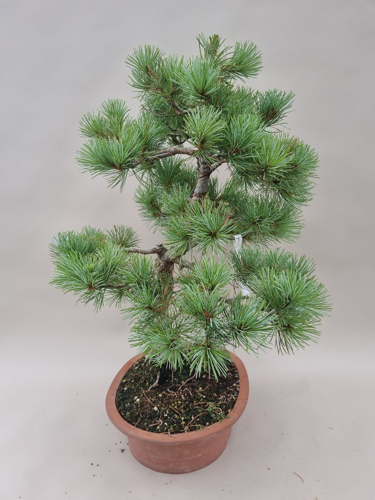 Mooie pinus parviflora in gebogen opgaande stijl. De stam is 2,5cm dik de hoogte van de boom is rond de 50cm.