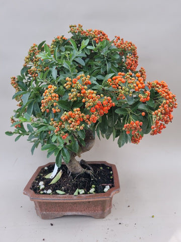 De vuurdoorn is een mooie soort om bonsai van te maken. De vuurdoorn is het hele jaar door groen. De stam van deze boom is ongeveer 4cm dik en 40cm hoog