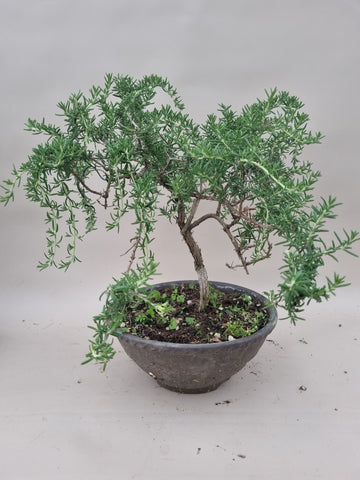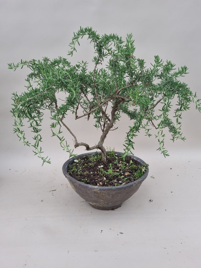 De rozemarijn is een bonsai waar het snoei afval van gegeten kan worden. Het is een mooi wintergroene soort.