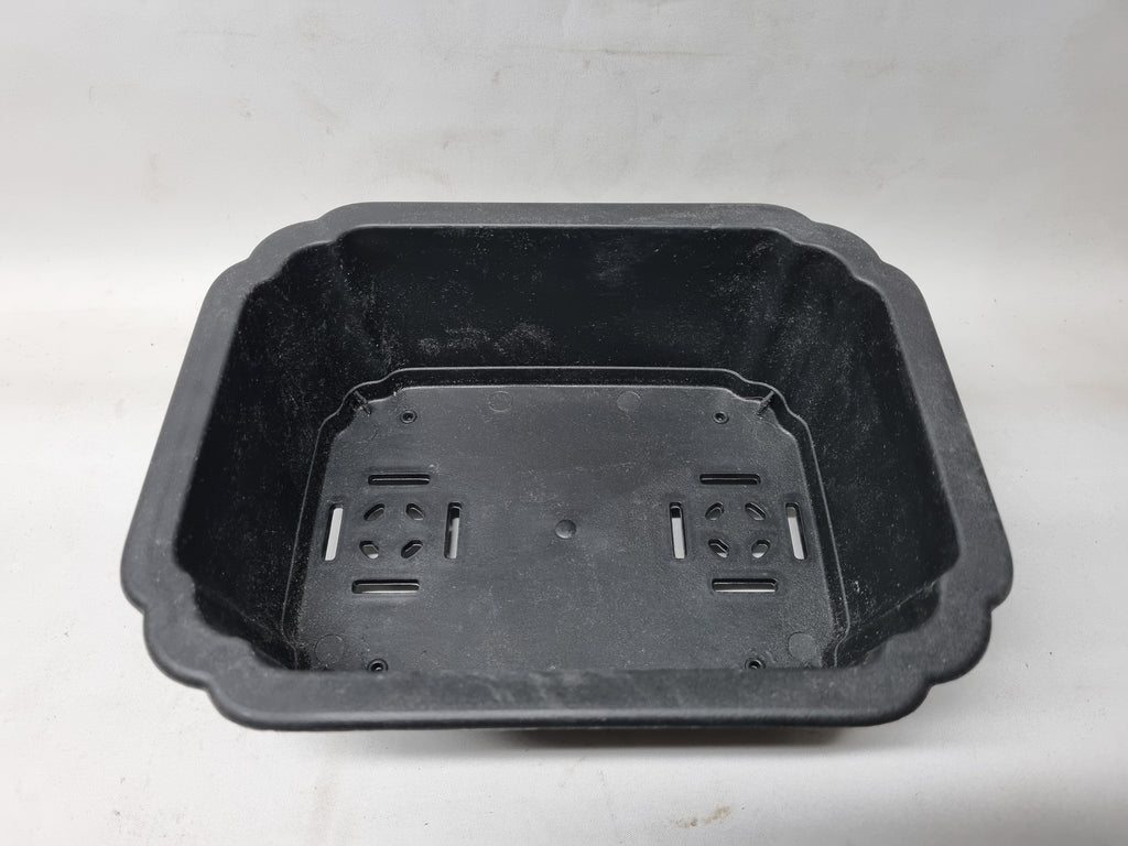 Rechthoekige zwart plastic trainings schaal. De buiten maten van de pot 24x23,5x8,5 cm. De pot mooi stevig van dik kunststof. De bonsai pot heeft mooie hoek afwerkingen.