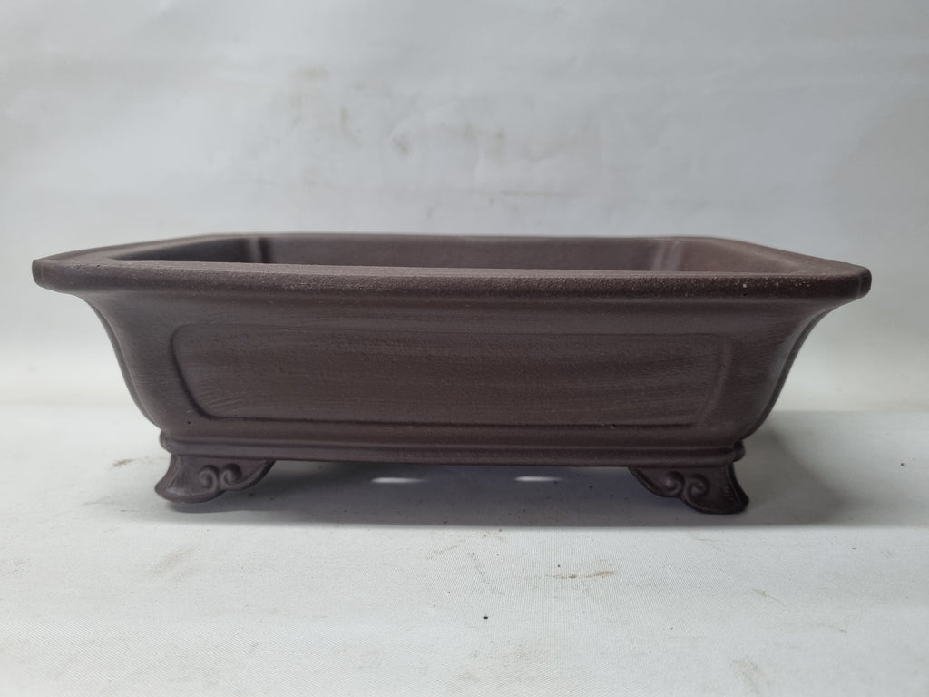 Yinxing donker bruin Ongeglazuurde rechthoek bonsai schaal. De kwaliteit van Yinxing aardewerk is gelijk Japans aardewerk schalen. Afmeting van de pot gemeten aan de buitenkant 26x19x8 cm