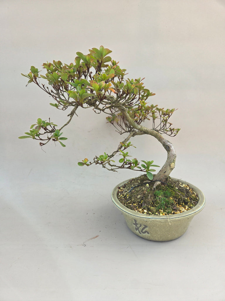 Faites entrer le printemps japonais dans votre maison ou votre jardin avec ce magnifique Azalée. Ce bonsaï a été soigneusement formé dans le style très apprécié de la semi-cascade, où le tronc s'élève avec force et les branches fleuries s'étendent gracieusement sur le bord du pot. Une œuvre d'art vivante qui surprend chaque année.